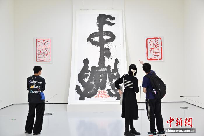 图为篆书着作《复兴》吸收观光者。中新社记者 旧楚白 摄